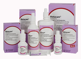 dog arthritis. Its analgesic property comes from its ability to inhibit pro-inflammatory COX enzymes. Metacam, generic name Meloxicam, was first developed by Boehringer-Ingelheim and is available commercially in the form of a honey-flavored suspension contained in a squeeze bottle with a measuring dose syringe.
